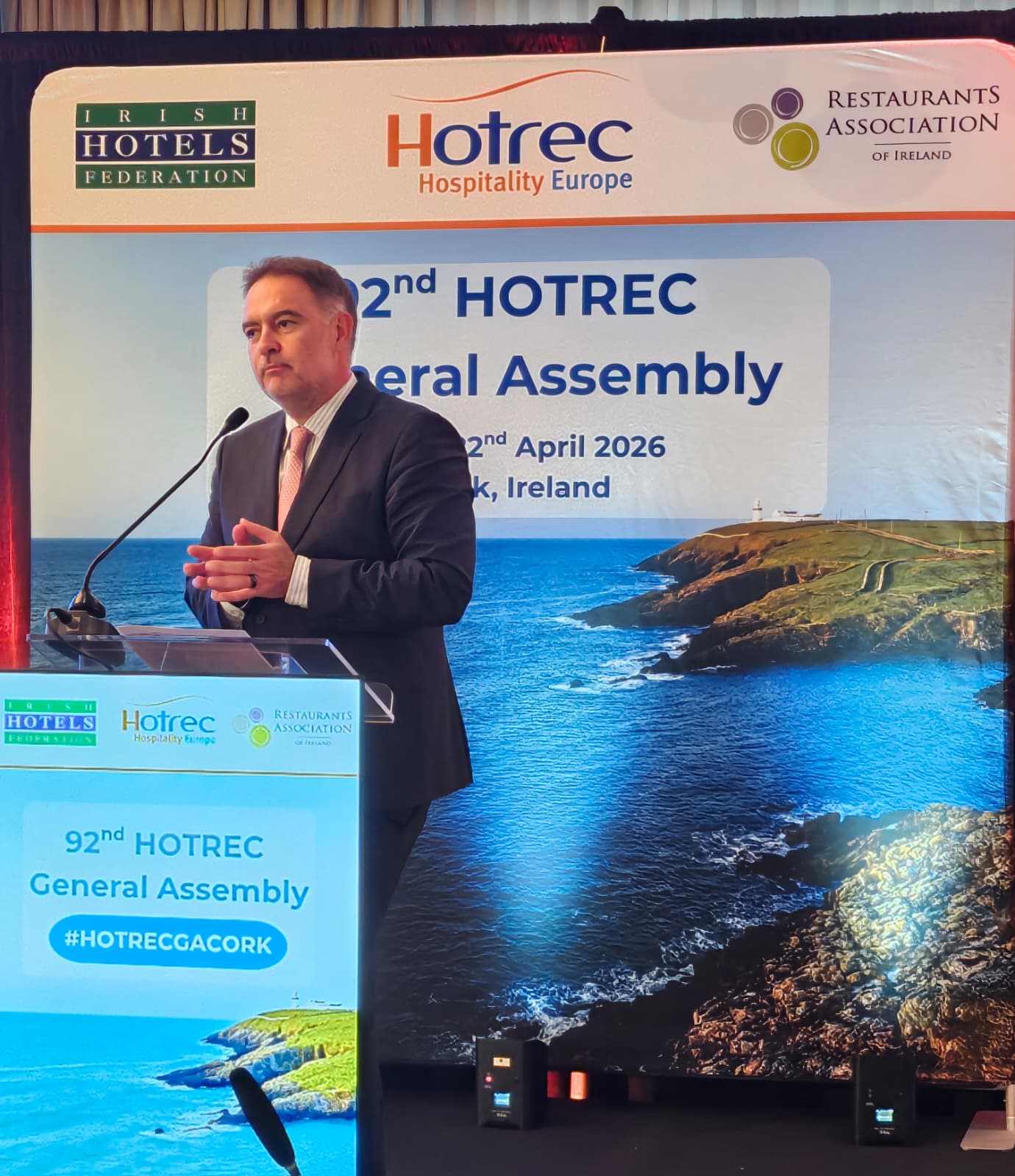Ηγέτες του κλάδου της Φιλοξενίας, εκπροσωπώντας περισσότερες από 30 ευρωπαϊκές χώρες, συγκεντρώθηκαν στο Κορκ της Ιρλανδίας για την 92η Γενική Συνέλευση της HOTREC, η οποία συνδιοργανώθηκε από την Ιρλανδική Ομοσπονδία Ξενοδόχων (IHF) και την Ένωση Εστιατορίων Ιρλανδίας (RAI).