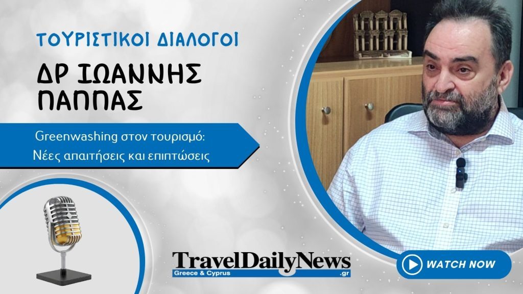 Το ζήτημα του greenwashing στον τουρισμό και οι επιπτώσεις της νέας ευρωπαϊκής νομοθεσίας αποτέλεσαν βασικό άξονα της συζήτησης στους Τουριστικούς Διαλόγους του TravelDailyNews Greece & Cyprus, όπου η Βίκυ Καραντζαβέλου συνομίλησε με τον Ιωάννης Παπάς, ειδικό σε θέματα αειφορίας.